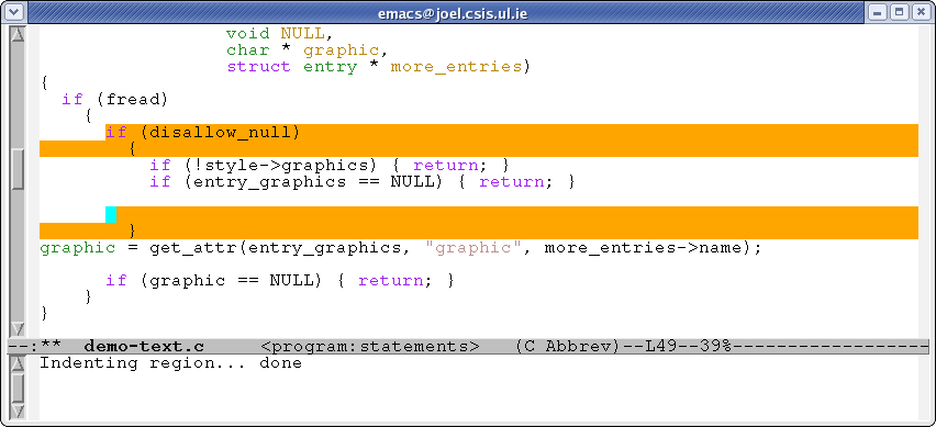 The command C-insert ? has wrapped a conditional around the selection. Again, it's shown in orange, because some of the change has happened outside the selection itself.
